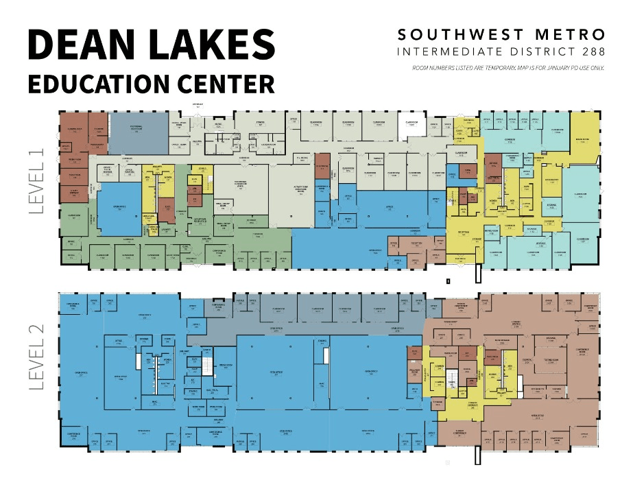 JANUARY WORKSHOP DAY JANUARY 17, 2022DEAN LAKES EDUCATION CENTER 8:00 am - 8:30 am | BREAKFASTCompass Suite Complimentary fruit parfaits and beverages will be available to self-serve. Those with dietary restrictions are welcome to bring their own food to supplement their needs. 8:30 am - 9:30 am | ARE YOU A DIGITAL CITIZEN?Room Assignments TBD - Groups determined by teams Digital Citizenship helps us understand what users should know to use technology appropriately and responsibly. Most of us are entirely comfortable with technology, but are we using it appropriately according to accepted norms, rules, and laws? This workshop will provide ideas on how to guide students to the knowledge and experience they need to act responsibly online, will introduce the topic of student online privacy and reduce the risk of student data being compromised and will empower educators to make highly informed decisions about the digital tools they use with their students. 9:30 am - 9:50 am | BREAK 9:50 am - 11:50 amSESSION ONE | PLCsProfessional Learning Communities have many goals, including improving skills and knowledge through collaborative conversations, study and thoughtful SMART goals and action steps. Please use this time to work with your fellow colleagues on team goals that can directly benefit students and programs.Room assignments are currently to be determined. Classrooms will be determined within one week of PD Day and will be sent to you via email. Social Studies Led by Jodie Pleinis Science Led by Christina Grant Mathematics Led by Stephanie Erickson Language ArtsLed by Geoff Johnson Social Emotional Led by Peter Dahl Childcare Led by Denise Hedtke TransitionLed by Staci Blix Adult Education Led by Penny Brown CTE Led by Mike Opp Care & TreatmentLed by Nora Nutt FOCUS/ATTAIN/LinC/OASIS Led by Michael Hullerus & Carrie Shaughnessy Itinerants Led by Sarah Kahley PRIDE/RISELed by Megan Blair & Lisa Senear 12:00 pm - 12:45 pm | LUNCHCompass SuiteComplimentary sandwiches, water, chips, and cookies will be served. Those with dietary restrictions are welcome to bring their own food to supplement their needs. 12:45 pm - 1:45 pmSESSION TWO | WELLNESS & SERVICEPlease use this time to focus on a wellness activity, whether physical or mental, while also giving back on this workshop day. All wellness sessions are requesting specific donations (listed in the course description when registering). All donations will be given to Oasis for Youth. Floor HockeyLed by David DettmannRoom 161 - Physical Education ClassroomDonations: Winter coats and clothing Yay for Macrame! Led by Abigail DenisRoom 1129Donations: Games for teenagers Project Linus Crafting Collab Led by Jennifer BockLounge near Pearson VUEDonations: Completed projects to be donated to Project Linus YogaLed by Green LotusRoom 1134Donations: Winter coats and clothing Martial Arts Stretching Led by Helen AhearnRoom B in upstairs CTE classroomsDonations: Books for kids and young adults Let the Good Times [Spring] Roll Led by Greenlight FoodserviceCollaboration CafeDonations: Canned goods and non-perishable food items New Year, New Goals, New You!Led by Joy WhiteheadRoom 1127Donations: Art supplies Birch in Winter Watercolor Led by Staci BlixRoom A in upstairs CTE classroomsDonations: Art supplies Healthy Car, Happy Car Led by Geoff JohnsonRoom C in upstairs CTE classroomsDonations: Winter sweaters 2:00 pm - 3:00 pm | SESSION THREE - TEAM MEETINGSRoom assignments TBDTeams will meet in the following groups. Please register for your team:River Valley Education CenterFreedom AcademyWasecaDHH/Audiology ItinerantsBVI ItinerantsMotor Team ItinerantsBCBAJAF, CCJ, Anicca, Passageways, PrairieCare, Lakeside AcademyCareer & TechALC, Catalyst, New Beginningse-LearningSt. Boni Education Center, 401 Special Education programsTransition, OASIS, ReflectionsAdult EducationEvaluation Team Task ForceRoom assignments are currently to be determined. Classrooms will be determined within one week of PD Day and will be sent to you via email. 3:00 pm - 3:30 pm | TESTING TRAININGRoom 1129Are you an MCA/MTAS test proctor? If so please plan to attend this brief training for testing for the MCAs/MTAS this year. You will have received an email reminding you to attend this very important training. Need a hand? Download a map of Dean Lakes Education Center to help you find your classes. Download the Meeting Room Map Download the Building Map MEETING ROOM NAMES Compass Suite? The Bridge?Our larger conference spaces have special names to designate them from each other. Download the key to the second level spaces here to see where you need to go.